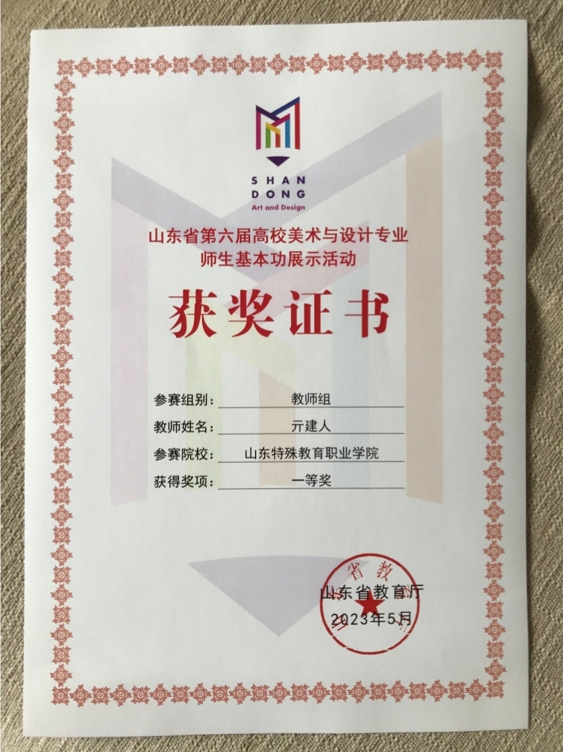 学院艺术设计系绘画教研室主任亓建人在山东省第六届高校美术与设计专业师生基本功展示比赛中获得教师组一等奖。