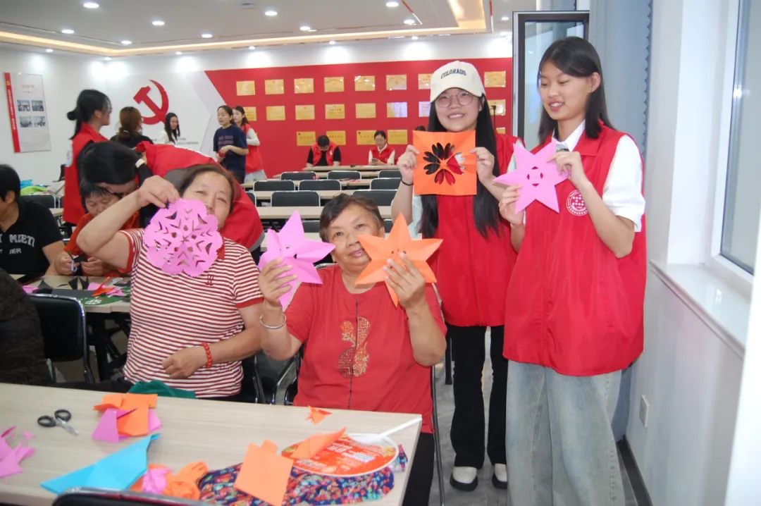 此次活动包含“古韵今谈·文化双辉”传统文化知识宣讲,“指舞健康·锦展活力”“以剪代笔·纸上生花”传统文化体验三个环节。在知识宣讲环节,志愿者从传统文化与技艺、传统文化的价值与保护等方面为社区居民展开讲解,提高了大家对传统文化的认识。实践环节,志愿者带领居民们一起做手指操八段锦,进行剪纸作品创作,在志愿者的指导下,一幅幅栩栩如生的剪纸作品呈现在大家眼前。居民们纷纷表示通过亲身体验,更加深刻的感受到了传统文化的魅力与博大精深,希望同学们多到社区开展这样丰富有趣的活动。