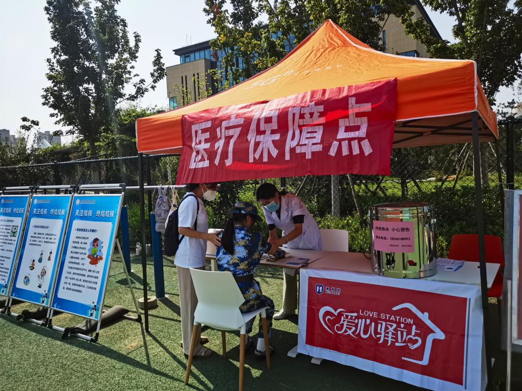 在新生的军训现场,学院设置了医疗保障点,安排医护人员轮流值守,配齐了中暑、外伤等急救物品,随时准备为学生提供医疗支持和救护,确保每位军训学生的健康与安全。同时,为学生发放健康教育宣传手册,普及流感、结核病、艾滋病、乙肝等疾病的防控知识,引导学生树立正确的健康观、养成健康的生活方式。