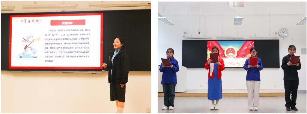 在“师生共读”环节,支部党员教师与学生发展对象一起朗读了书中的经典片段,以真情实感再现了“南陈北李,相约建党”的佳话,展现了早期共产党人艰苦卓绝的奋斗历程;在“书意之旅”环节,学生代表与党员教师分享了自己喜欢的书籍,大家结合学习生活及工作经历,从不同角度畅谈了读书的收获,现场气氛热烈,书香四溢。活动的最后,同学们深情朗诵了诗歌《如果信仰有颜色》,淋漓尽致地表达了长在红旗下生在春风里的新时代青年对党和祖国的热爱。