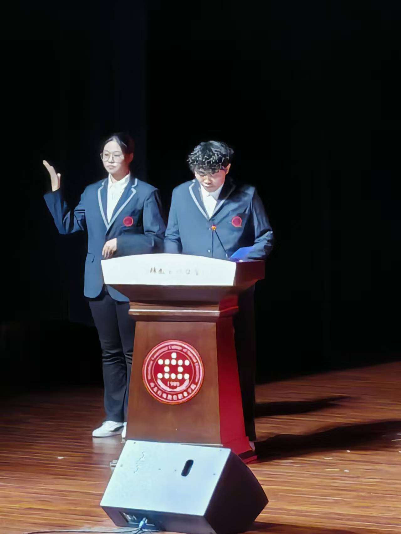 随后,新一届学生会主席郝旭阳过上一届学长学姐的接力棒,表示将在继承并发扬优良传统,强化自身建设,立足学生服务,切实为同学们提供高质量服务;倾听同学建议,开展多元活动;精心策划组织活动,为同学们的校园生活增添色彩;敢于创新突破,积极主动作为,提升学生会的宣传与服务效率,以创新思维打造更具活力与影响力的学生会。