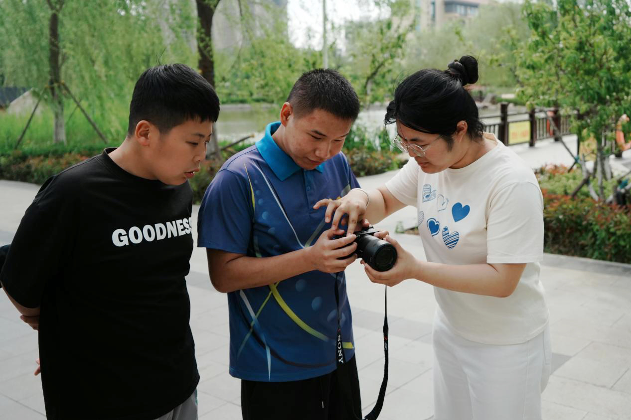 在“我的视角”自由创作环节,志愿者与对拍摄感兴趣的视障学生“1对1”结对,耐心指导他们在校园内进行拍摄实践。在志愿者的引导下,视障学生们用相机记录下了自己独特的视角,留下了珍贵的瞬间。活动结束后,志愿者还将相关照片打印出来送给视障学生,让他们能够留存这份美好的回忆。
