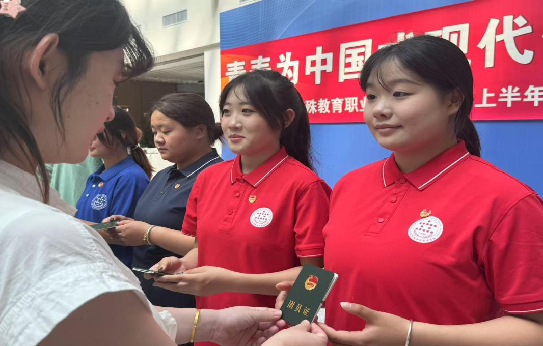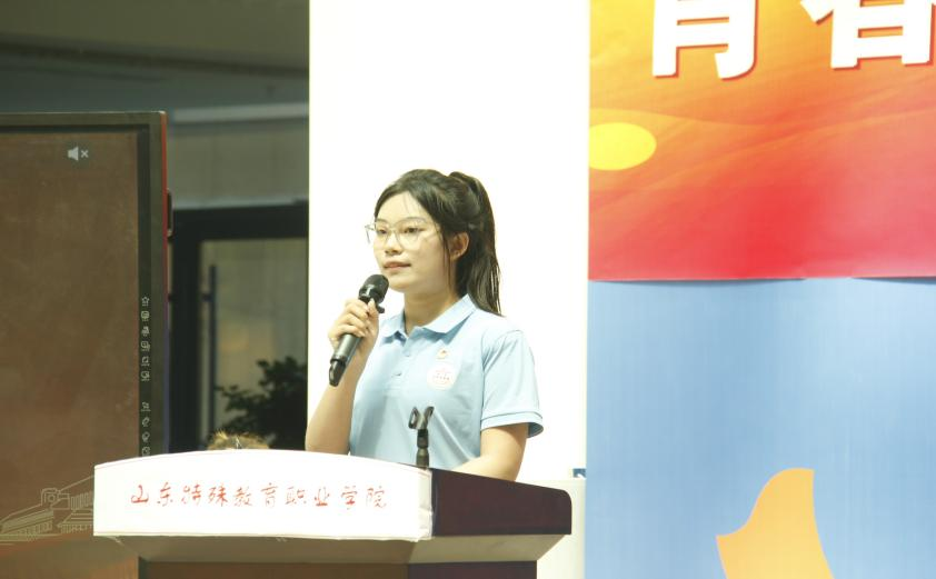 2024级特殊教育2班赵昱婷同学作为新团员代表发言。她表示,将时刻以团员标准严格要求自己,以实干践行誓言,为中国式现代化贡献青春力量。