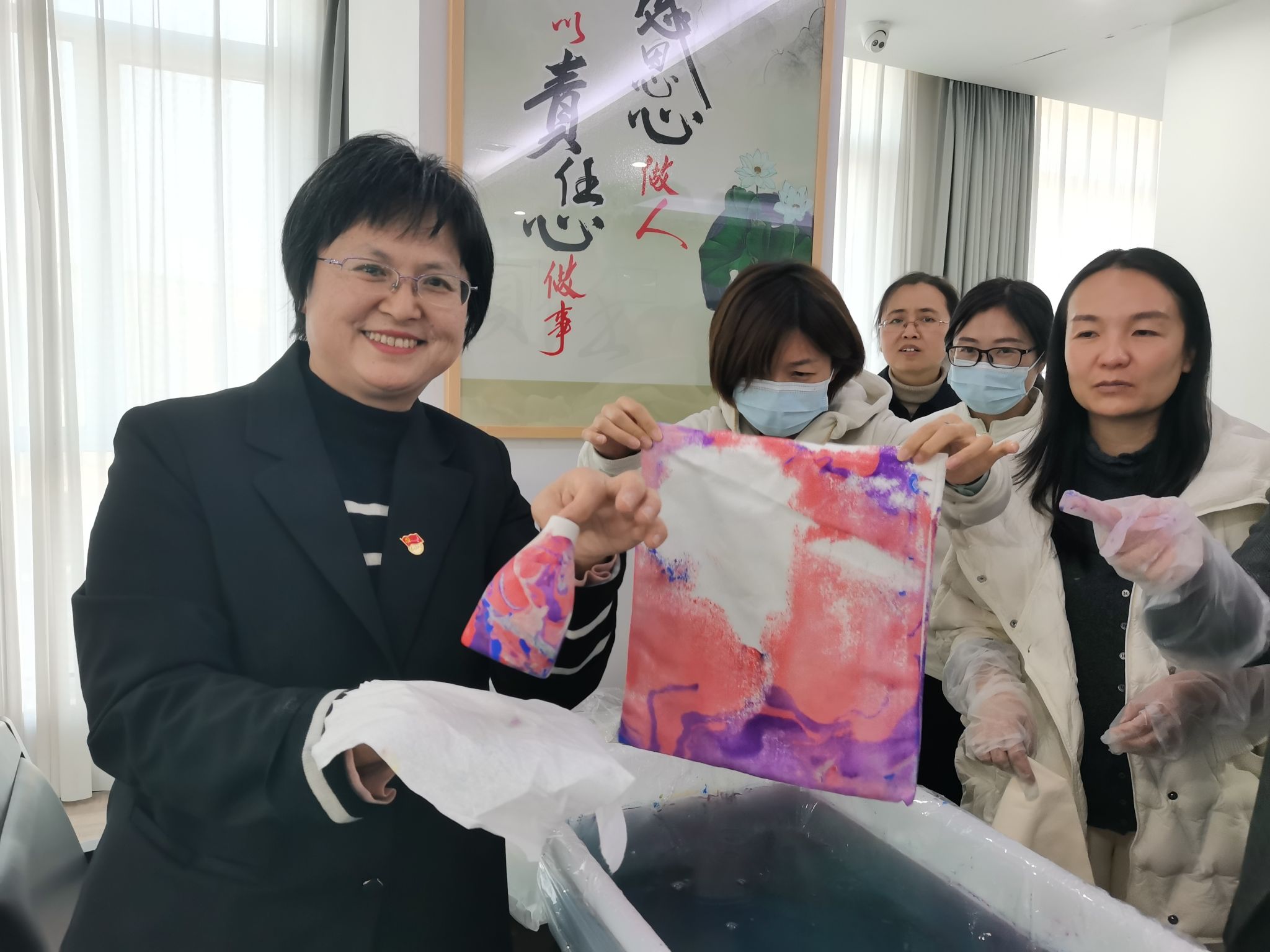“非遗传承润民心”的温情载体是水拓画体验。信息技术系、公共教学部等党支部的党员们分工协作:党支部书记武鲁英带头统筹材料,党员教师讲解技艺并演示,综合三党支部书记黄艳华组织分组体验,党员志愿者全程指导,让民警与居民感受非遗魅力。