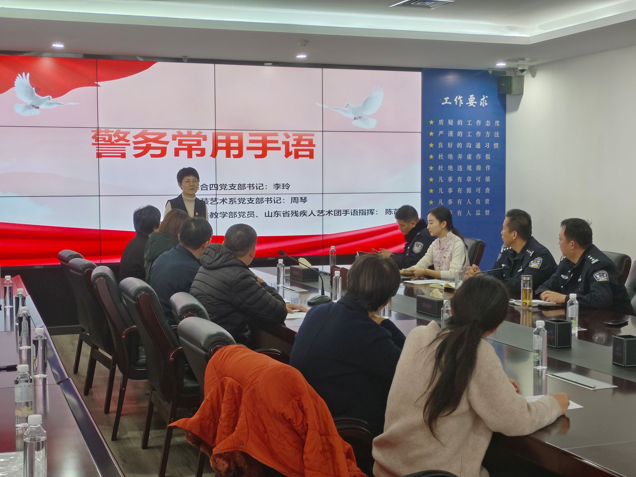 学院党委委员、副院长车荣晓代表学院向顺兴路派出所民警致以诚挚感谢:“长期以来,顺兴路派出所的民警们始终坚守在校园及周边安全保障一线,无论是日常巡逻防控、突发事件处置,还是校园安全宣传,都用责任与担当为全院师生营造了安全稳定的学习工作环境,这份守护让我们倍感温暖。”随后他强调,此次活动既是学院党员服务下沉基层的具体实践,更是对民警们无私付出的一份回馈——以定制化手语教学破解警民沟通堵点,用非遗传承搭建温情桥梁,充分体现“党员服务进警营”的务实性与“非遗传承润民心”的感染力。