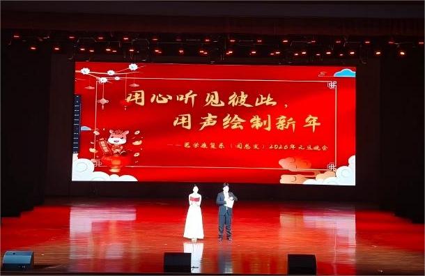 为丰富校园文化生活,展现学子青春风采,凝聚师生奋进力量,12月30日晚,学院医学康复系“用心听见彼此,用声绘制新年”主题元旦晚会在温馨热烈的氛围中如期举行。系部师生欢聚一堂,共同聆听声音的温暖,迎接2026年的希望曙光。