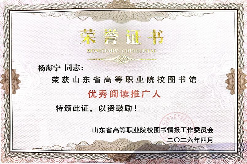 会议同期举行表彰与作品展示环节,学院图书馆副馆长杨海宁荣获“优秀阅读推广人”称号;2023级服装艺术系学生张瑞创作的阅读手作《探索与新知》,在“匠心齐鲁读书节”阅读手作作品征集中荣获三等奖。