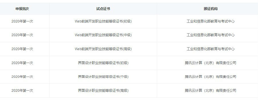 近日,从教育部职业技能等级证书平台获悉,kaiyun开云官方在线入口信息技术系申报的第三批1+X证书制度试点“Web前端开发”和“界面设计”共2个项目全部通过审核。