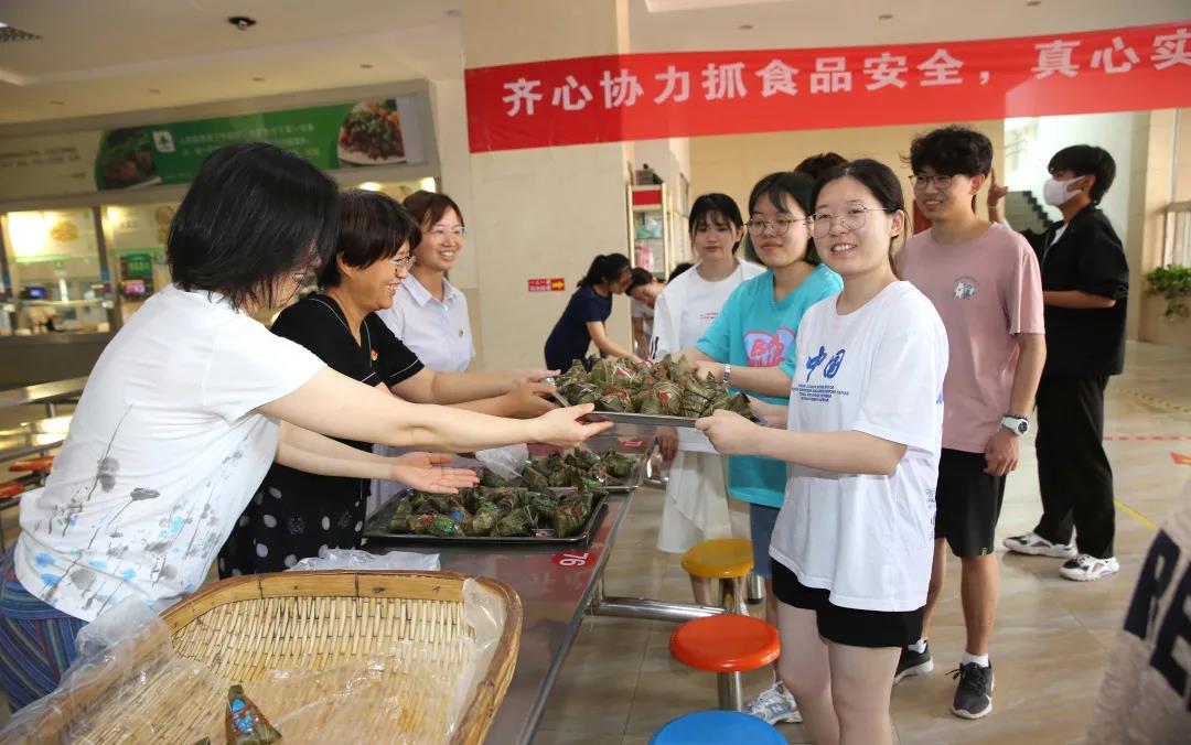 为弘扬中华民族优秀传统文化,丰富党员、群众的节日文化生活,6月11日上午,在端午节来临之际,综合三党支部在学院餐厅组织开展“端午粽飘香·师生心连心”主题党日活动,为全院学生发放爱心粽子。学院副院长白文国、姜欣参加了本次活动。