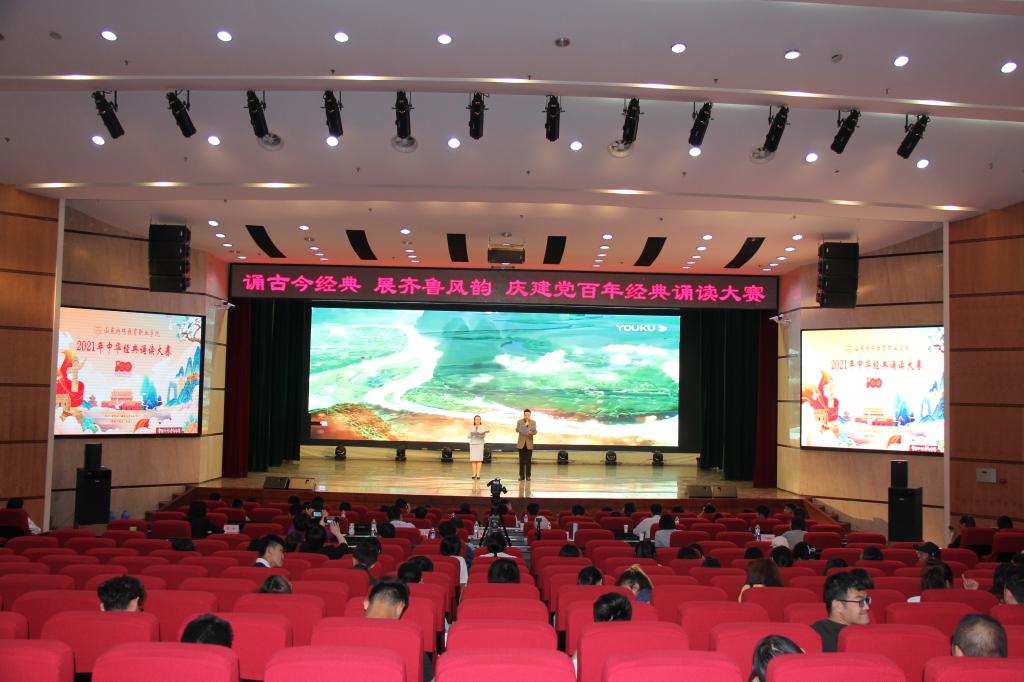 以庆祝中国共产党成立100周年为契机,为充分发掘中华优秀文化价值内涵,彰显中华语言文化魅力,弘扬中国精神,引导广大师生亲近中华经典,自觉传承红色基因,培育爱国主义精神,学院教务处(语言文字办公室)、学工处(学院团委)主办的 “诵古今经典·庆建党百年”中华经典诵读比赛于5月17日下午在学院礼堂举行。