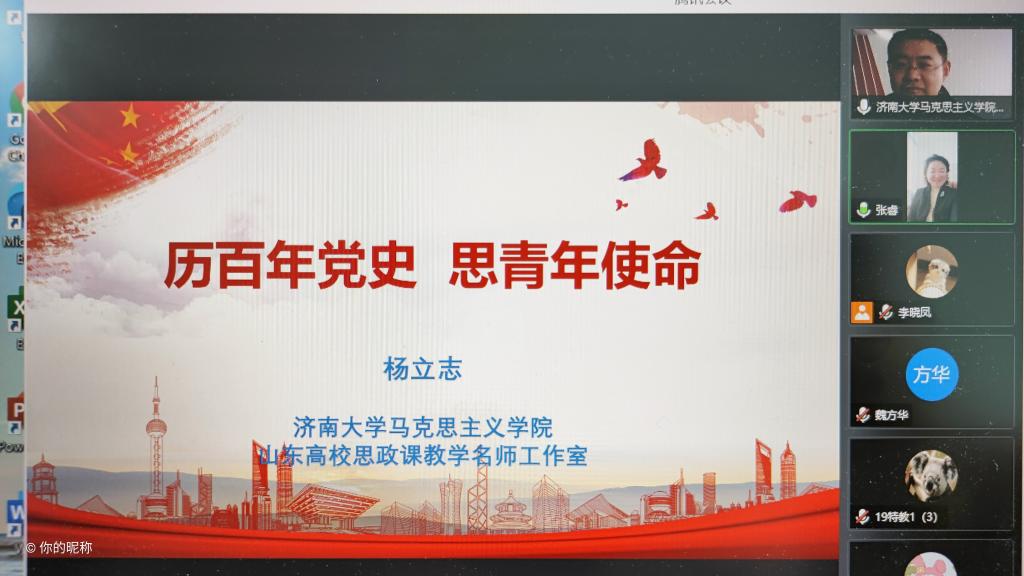 11月11日,学院特耀先锋大讲堂邀请济南大学马克思主义学院教授杨立志以《历百年党史思青年使命》为题,以线上的形式讲授了一堂精彩的党史课。学院医学康复系、特殊教育系、计算机应用技术系683名学生,综合一党支部全体党员,思政部全体教师,医学康复系、特殊教育系、计算机应用技术系党员、辅导员聆听了本次党课。党课由思政部主任张睿主持。