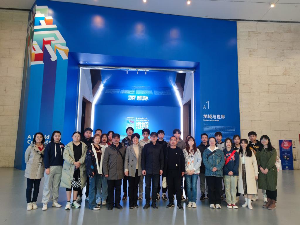 山东美术馆研究馆员、学术研究部主任郭振宇老师带领师生参观学习了“共生世界—2022济南国际双年展”,该展览通过多维艺术形态的再认识、再阐释,建构了当代与传统、现实与虚拟、人与自然、地域与世界等多个维度的艺术世界,关注当今人类社会发展的全球性主题和艺术发展趋势,具有鲜明的时代性。作品汇聚了中国画、油画、版画、综合材料、摄影、雕塑、影像、装置、新媒体等十余个艺术门类,涵盖生态艺术、观念艺术、抽象艺术、新表现艺术等诸多艺术流派,形式当代、形态多样,具有鲜明的民族和本土特色。