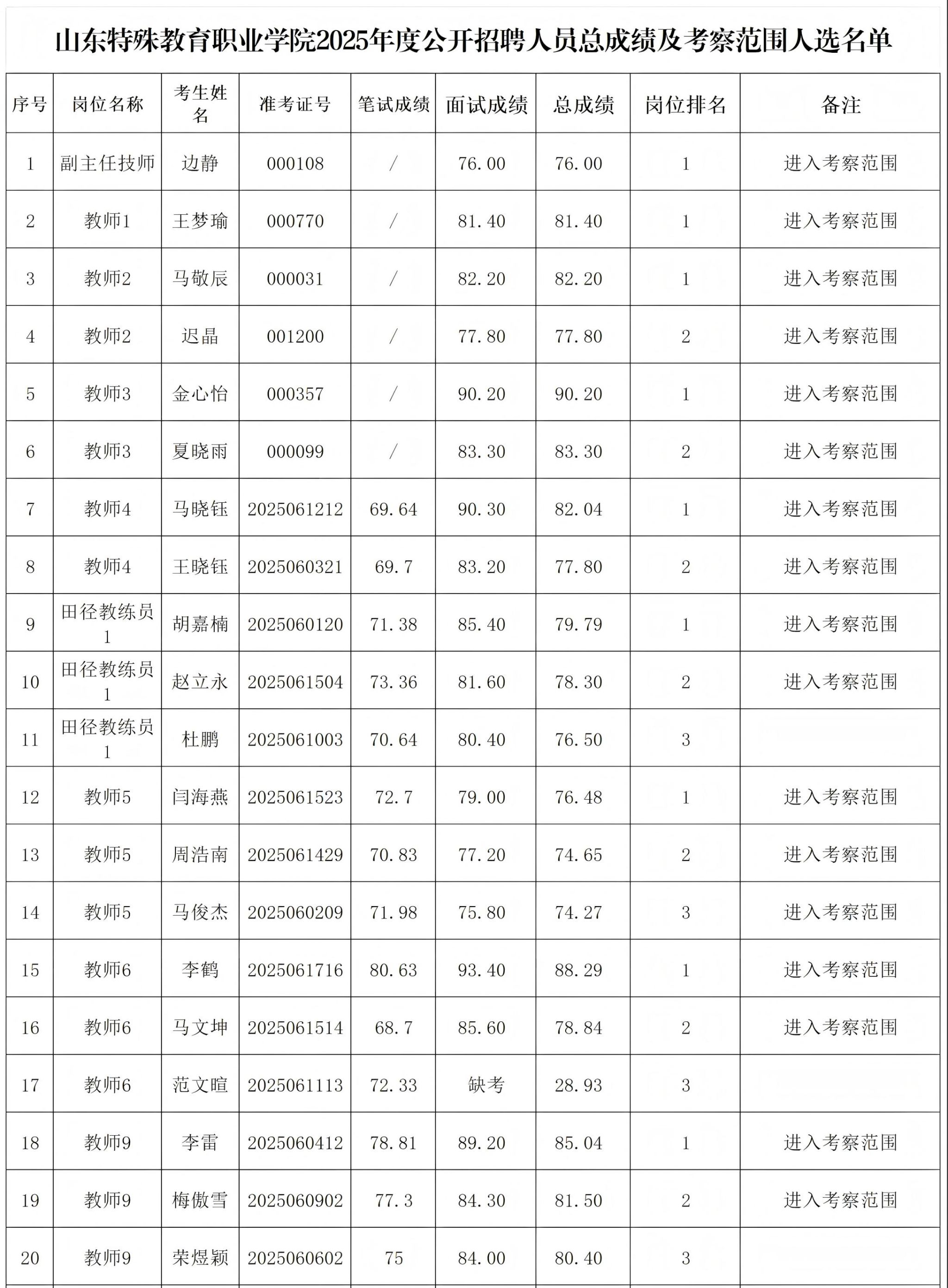 附件:kaiyun开云官方在线入口2025年度公开招聘人员总成绩及考察范围人选名单