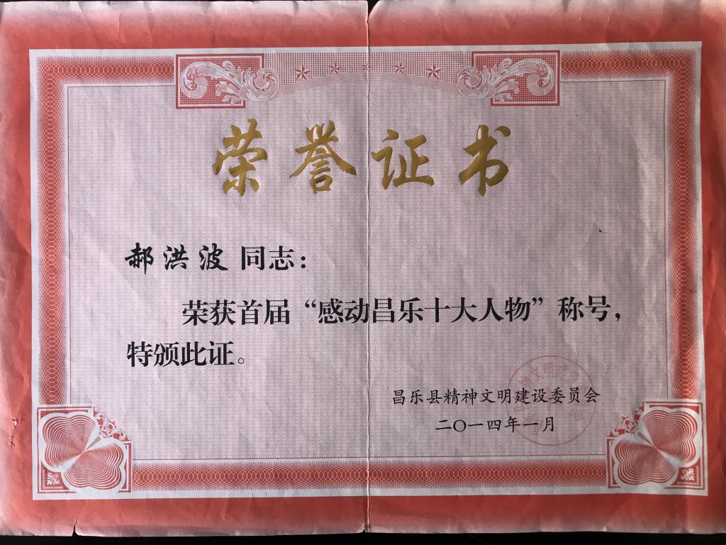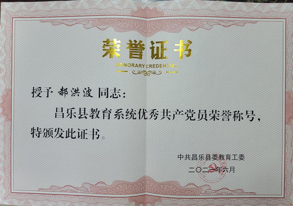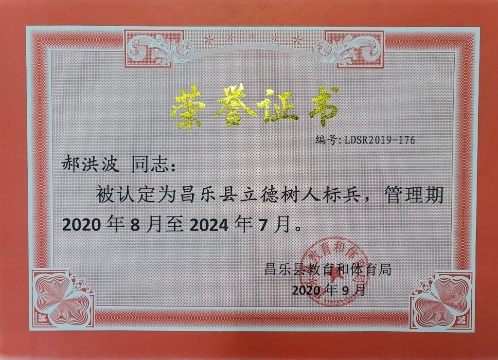 2014年被评为“感动昌乐十大人物”;2020年入选“潍坊市优秀青年文艺人才库”。2020年被认定为“昌乐县立德树人标兵”,2020年被授予“昌乐县教育系统优秀共产党员”荣誉称号。