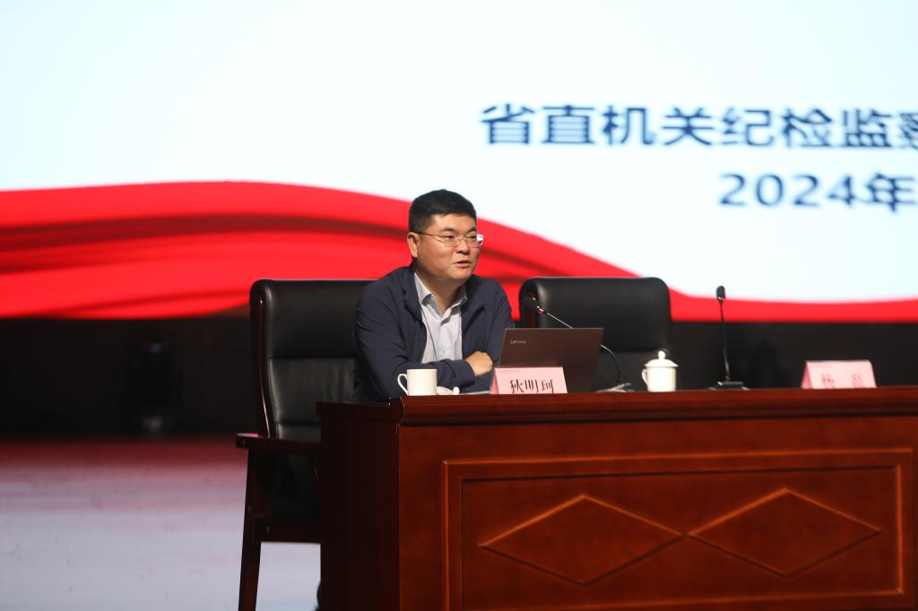 为进一步深化党纪学习教育,加强党风廉政建设,切实增强党员干部的廉洁自律意识,引导全院党员干部受警醒、明底线、知敬畏,努力营造风清气正的校园环境,11月14日下午,在学院礼堂组织召开以案为鉴深化纪法教育专题讲座,邀请省直机关纪检监察工委副书记狄明珂作专题报告,省残联直属机关纪委书记陈刚到会指导,学院党委书记杨磊主持并讲话。