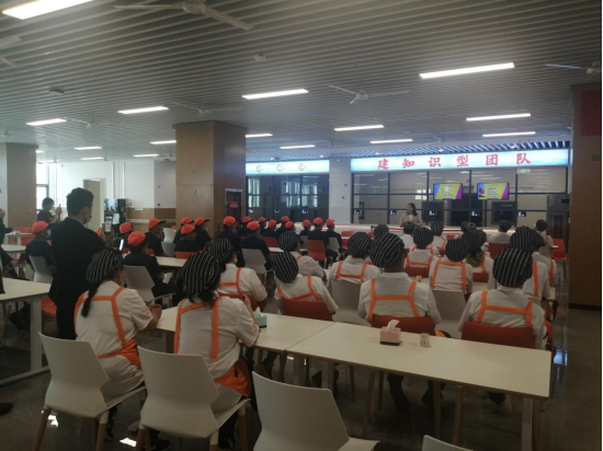 5月18日,为了落实学习习近平新时代中国特色社会主义思想主题教育活动,公共教学部党支部陈苗老师为新校区餐厅工作人员开展手语培训,受到餐厅工作人员热烈欢迎。