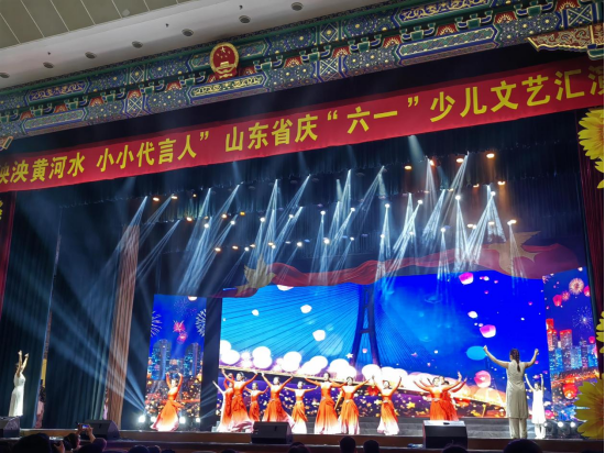 2023年5月27日,学院金石舞蹈团受邀赴珍珠泉人民会堂参加“泱泱黄河水 小小代言人”山东省庆“六一”文艺汇演,演出舞蹈团于2020年编创的保留节目《灯火里的中国》。