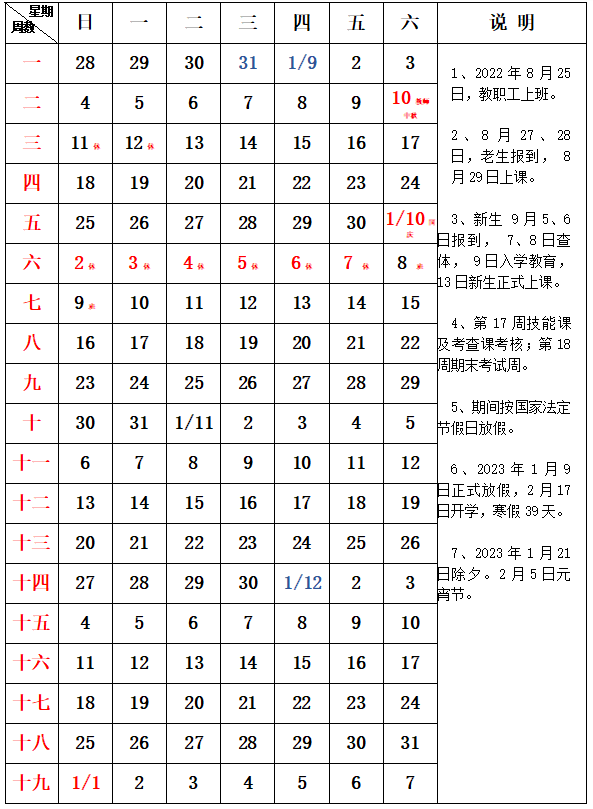 kaiyun开云官方在线入口2022-2023学年第一学期校历