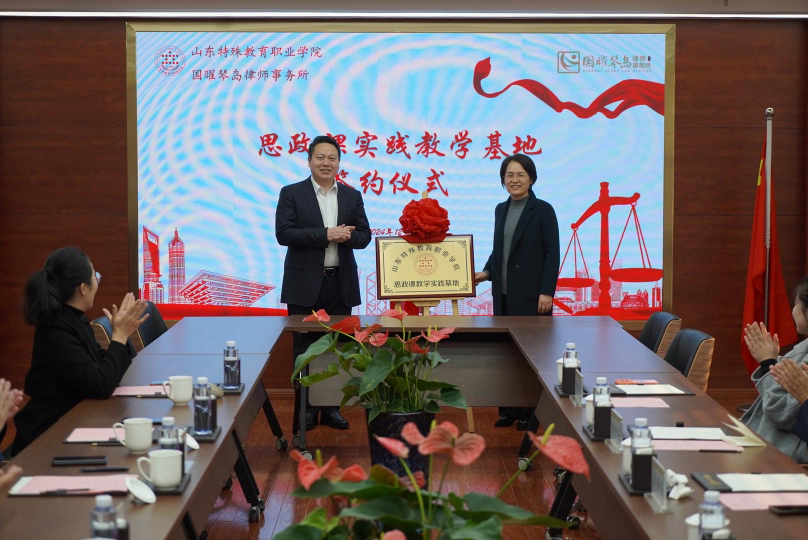12月5日,“思政课实践教学基地”签约及揭牌仪式在国曜琴岛律师事务所举行。学院党委副书记孔苏华、思政部主任张睿、招生就业处主任黄艳华、国曜琴岛律师事务所执委会主任姚斌等参加活动。