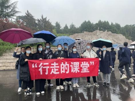 活动当日,社员及老师冒雨前往英雄山烈士纪念碑,祭奠革命先烈,向先烈敬献鲜花,鞠躬,并背诵了七律长征。