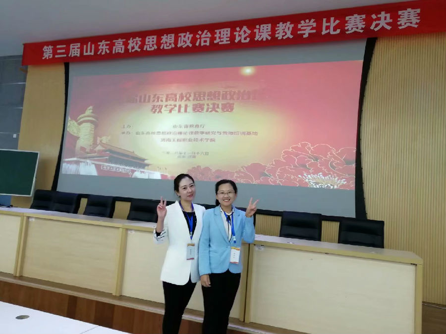 在第三届山东省高校思想政治理论课教学比赛中,我部思政教师郑欣怡获得高职高专“概论”组一等奖,杨海宁获得高职高专“基础”组二等奖。