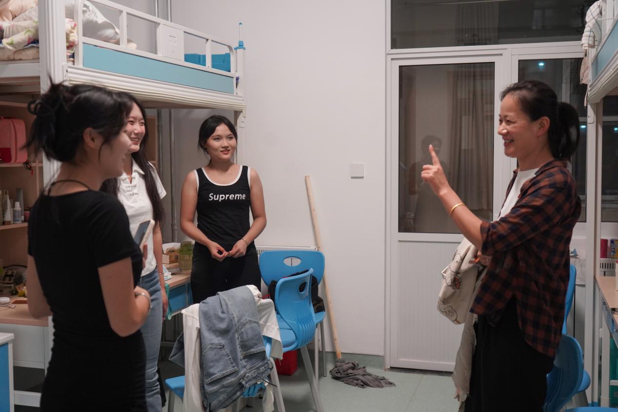 为深入了解2024级新生的生活状况及入住情况,9月2日晚系部领导带领辅导员、新生班主任深入宿舍进行走访慰问。每到一处,老师们都与学生亲切交谈,细心询问同学们能否适应,是否存在困难,遇到问题及时向系部反映,并耐心听取他们的意见与建议。走访过程中,还提醒同学们注意用电安全,保管好个人贵重物品等,同时勉励同学们珍惜大学时光,努力学习专业知识,提升自身素质。
