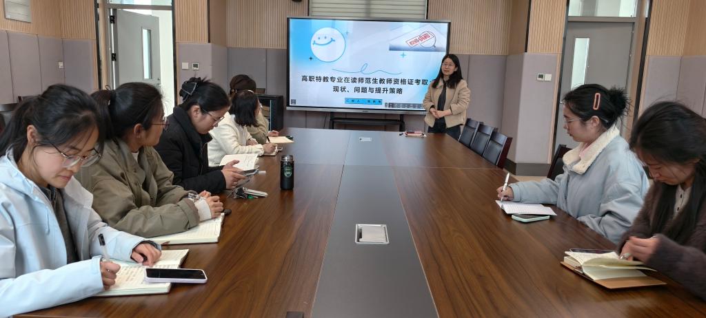 在交流环节,教师们就如何优化教资考试课程体系、提升学生应试能力等问题展开热烈讨论。大家一致认为,应整合系部教学资源,为特教专业学生量身打造备考资料,强化专业基础知识及面试实训案例的学习。同时增加模拟考试次数,让学生熟悉考试流程与题型,组织更多的模拟演练。老师们意识到将指导学生备考的过程性管理融入日常教学工作并形成常态化工作机制的必要性、重要性。