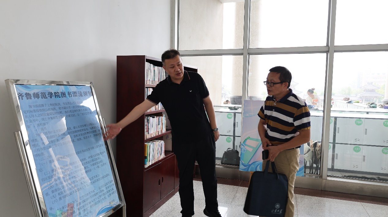 座谈结束后,在馆长王允华的带领下,一同参观了文脉书斋、特藏书库以及各个图书借阅室。在参观过程中,王允华馆长和其他陪同人员进行了详细的介绍和讲解,我馆人员表示要学习借鉴齐鲁师范学院图书馆在资源建设、管理服务等方面的先进经验,提升我馆的服务质量和管理水平。