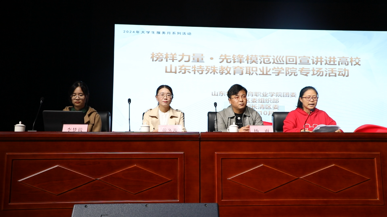 为进一步深化校地融合,深入挖掘并传播“身边的榜样”精神,10月21日下午,长清区委组织部、共青团长清区委联合学院团委举办的榜样力量·先锋模范巡回宣讲进高校活动在学院礼堂举行。活动特邀优秀选调生代表李梦筱、先锋模范代表(全国模范教师)戴冬茜及优秀党组织书记、党务工作者杨雨进行宣讲。学院五百余名师生代表聆听宣讲。