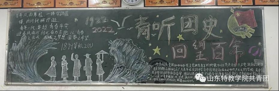 为庆祝中国共青团成立100周年,激昂青春力量,营造积极向上的校园文化氛围,学院团委举行了“喜迎建团百年,争当时代青年”主题黑板报评比活动。