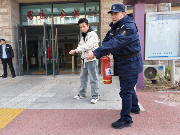 理论学习结束后,实战演练在八号宿舍楼正式拉开帷幕。工作人员现场拆解灭火器“提、拔、握、压”四步法,强调“就近撤离、不关门、呼室友”的逃生要点,并特别倡导“一个都不能少”的互助理念,鼓励身体条件允许的同学主动协助行动不便者撤离;演练全程中,系部领导、辅导员及安保人员严阵以待、坚守岗位,在多方紧密配合下,同学们快速有序地完成疏散,整个流程规范高效,充分展现了团结互助的精神风貌。