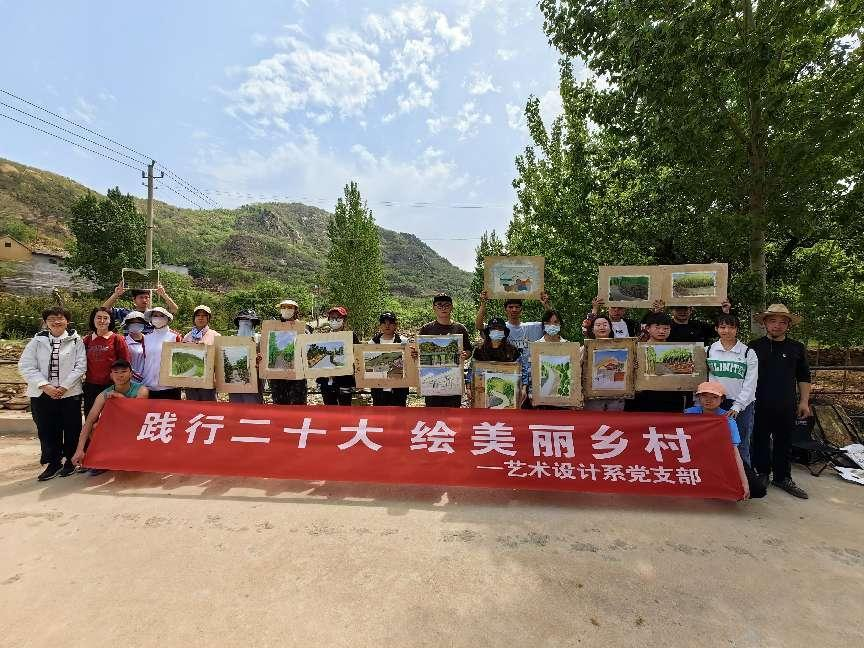 近日,艺术设计系党支部组织党员前往长清区武庄乡小刘庄村学生写生基地,开展“践行二十大 绘美丽乡村”党员实践活动。