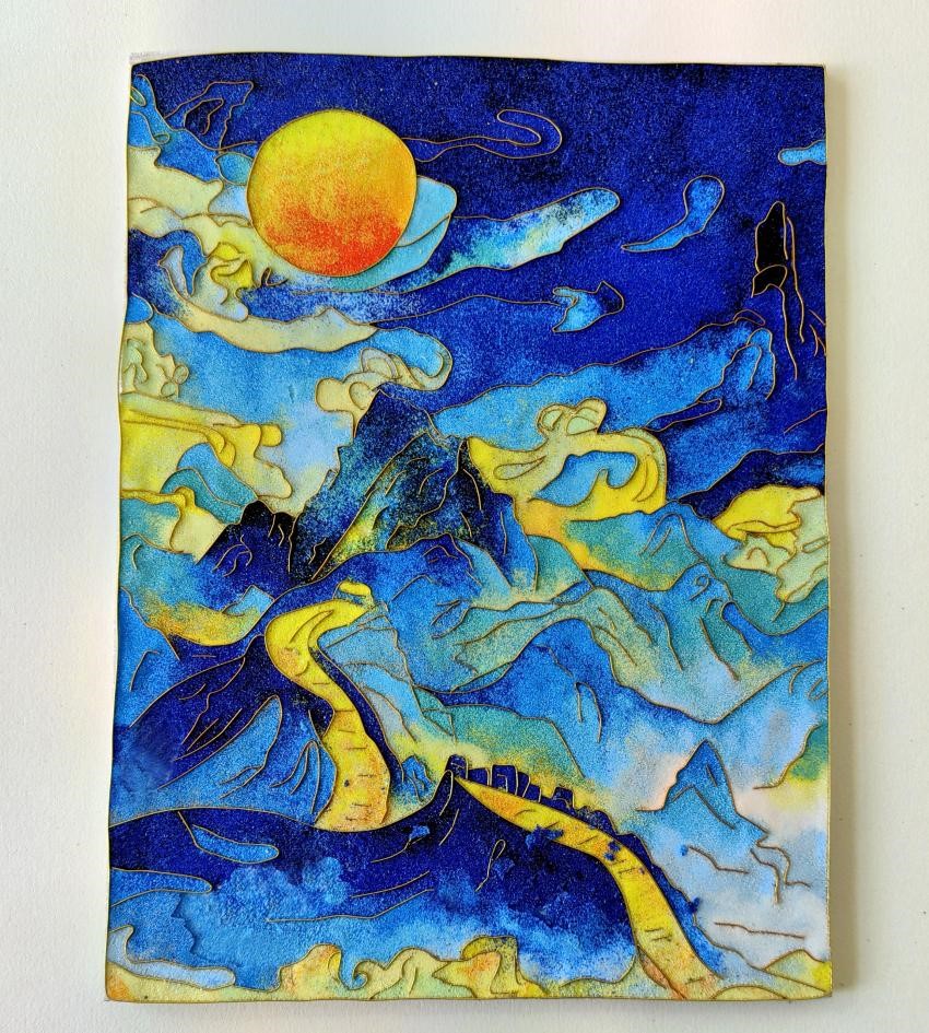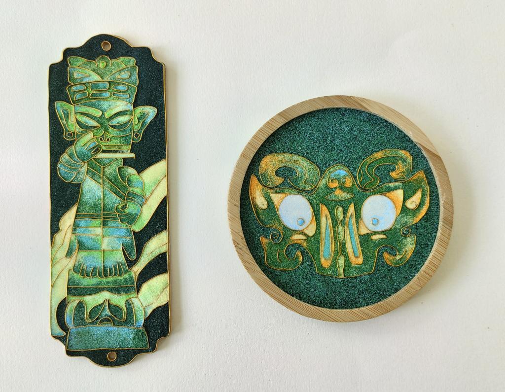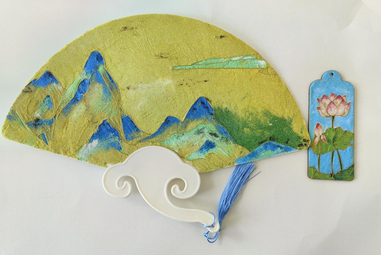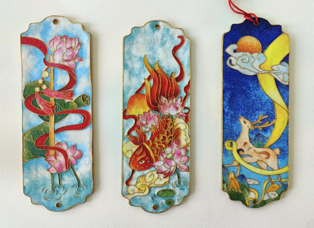 《创意设计》课程是五年制工艺美术品设计专业的核心课之一。本学期的创意设计课程是将中国传统工艺美术技艺掐丝珐琅彩与文创产品相结合,依托书签、杯垫、扇子等材质进行传统工艺的新形式呈现。让学生通过理论学习与实践操作,了解掐丝珐琅彩的历史背景和艺术特点,掌握掐丝、点蓝等制作流程,培养学生图像设计能力、色彩搭配能力及精益求精的工匠精神,让传统工艺在新时代绽放耀眼光芒。