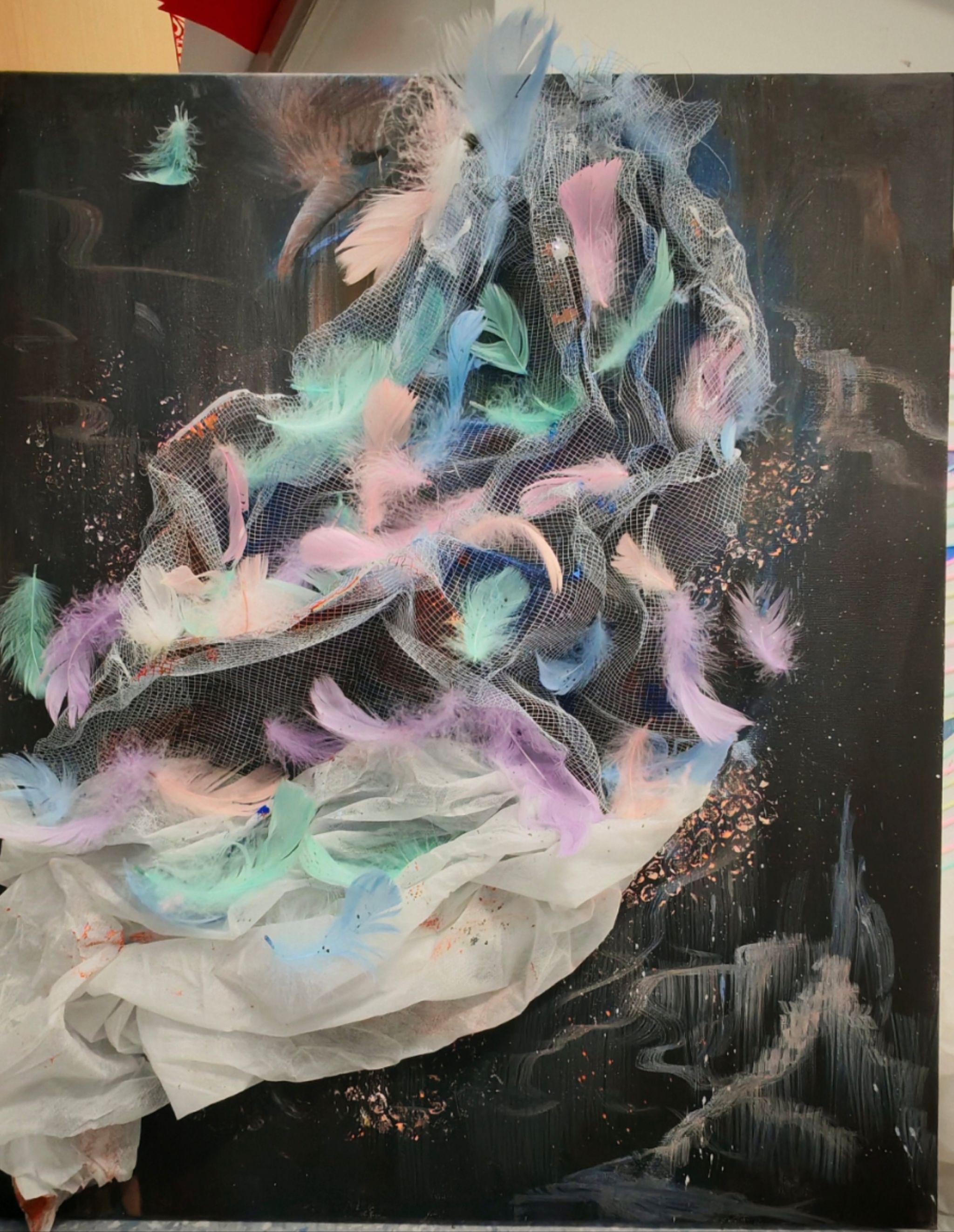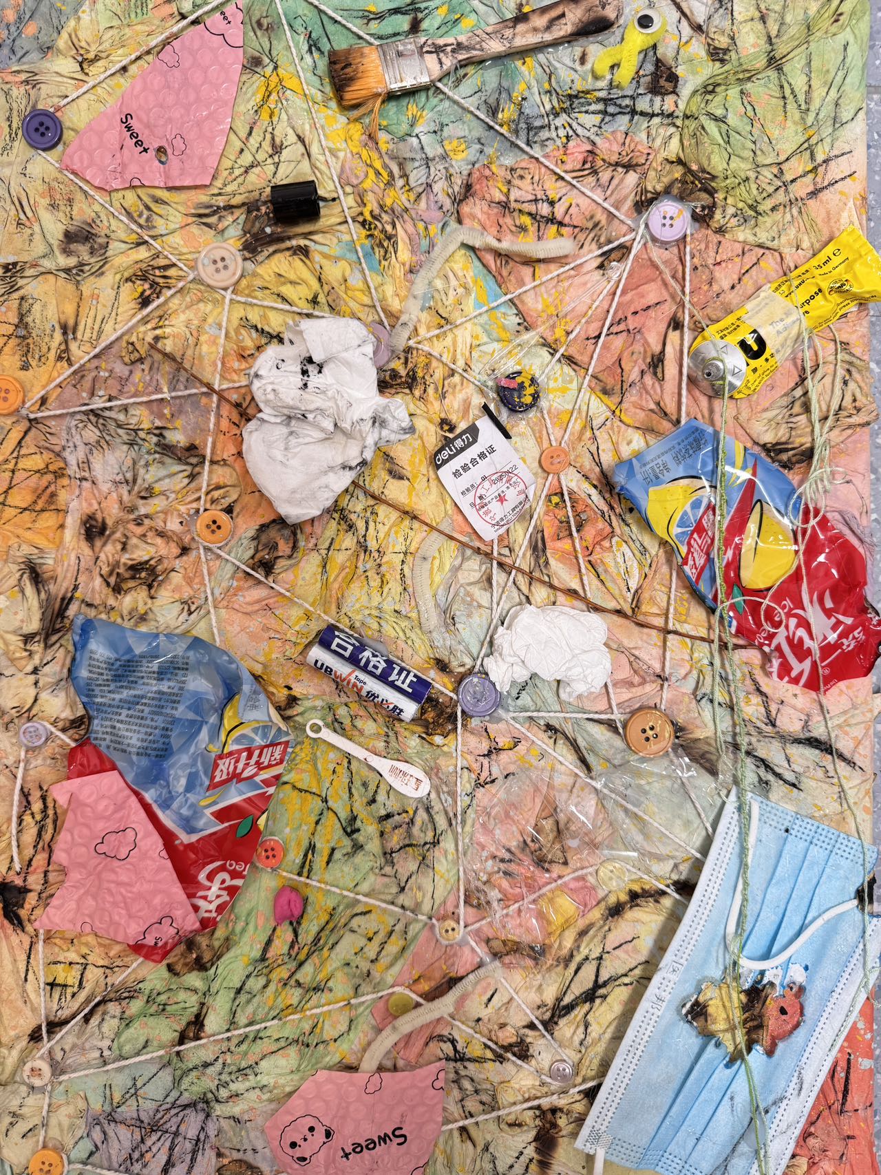 《综合绘画》课程是一门绘画与设计融合的课程,本次课专注于探索和运用多种不同材料进行创作,突破单一媒介的限制,旨在拓展创作者的艺术语言和表达方式。