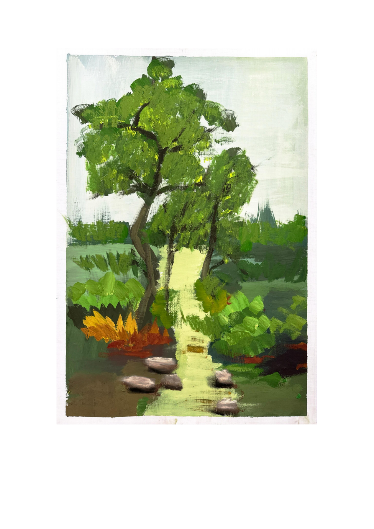 《风景写生》课程是三年制工艺美术品设计专业的核心课之一。课程以自然光线为创作媒介,引导学生走出画室,在真实环境中捕捉光影、色彩与空间的动态关系,从而突破室内绘画的静态模式。通过实地观察与创作,学生不仅能掌握构图、色彩运用及光影处理等专项技能,还能培养对自然光色的敏感度,提升绘画水平与审美能力。此外,课程鼓励学生在自然中寻找灵感,将个人情感融入创作,强化艺术表达的感染力。