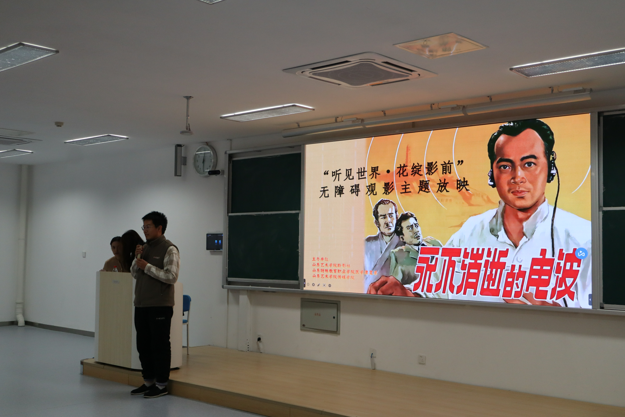 活动精选红色经典影片《永不消逝的电波》,由山东艺术学院传媒学院聆影社成员倾力打造无障碍化解说版本。通过实时语音旁白、环境音效的立体化增强与动态渲染,将银幕上的光影变幻转化为细腻入微的听觉叙事,让视障观众得以“聆听”电影中烽火岁月的跌宕起伏与人物情感的涓涓细流。