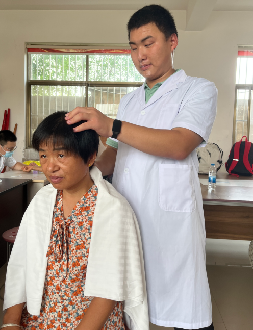 此次义诊不仅为牡丹区村民解决了实际健康需求,更成为视障学生实践锻炼的重要平台。学生闻付林说:“通过为村民推拿,我对穴位和力度的把控更精准了,也更明白专业的价值。”