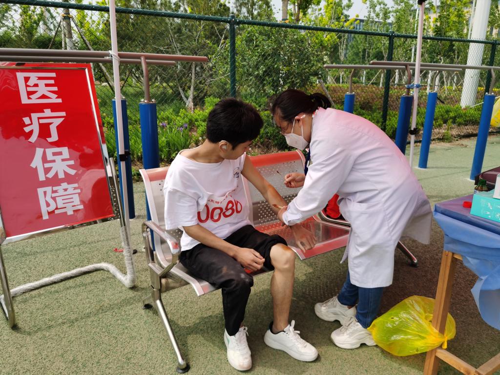 赛场上,运动会火热进行中,运动员们在赛场上努力拼搏;赛场下,医护人员坚守岗位,密切关注运动员们的身体状况,一旦发现晕厥、扭伤、擦伤、抽筋等突发情况,立即进行专业处理,确保运动员们能够得到及时有效的现场医疗救护,圆满完成了校运动会的医疗急救保障工作。