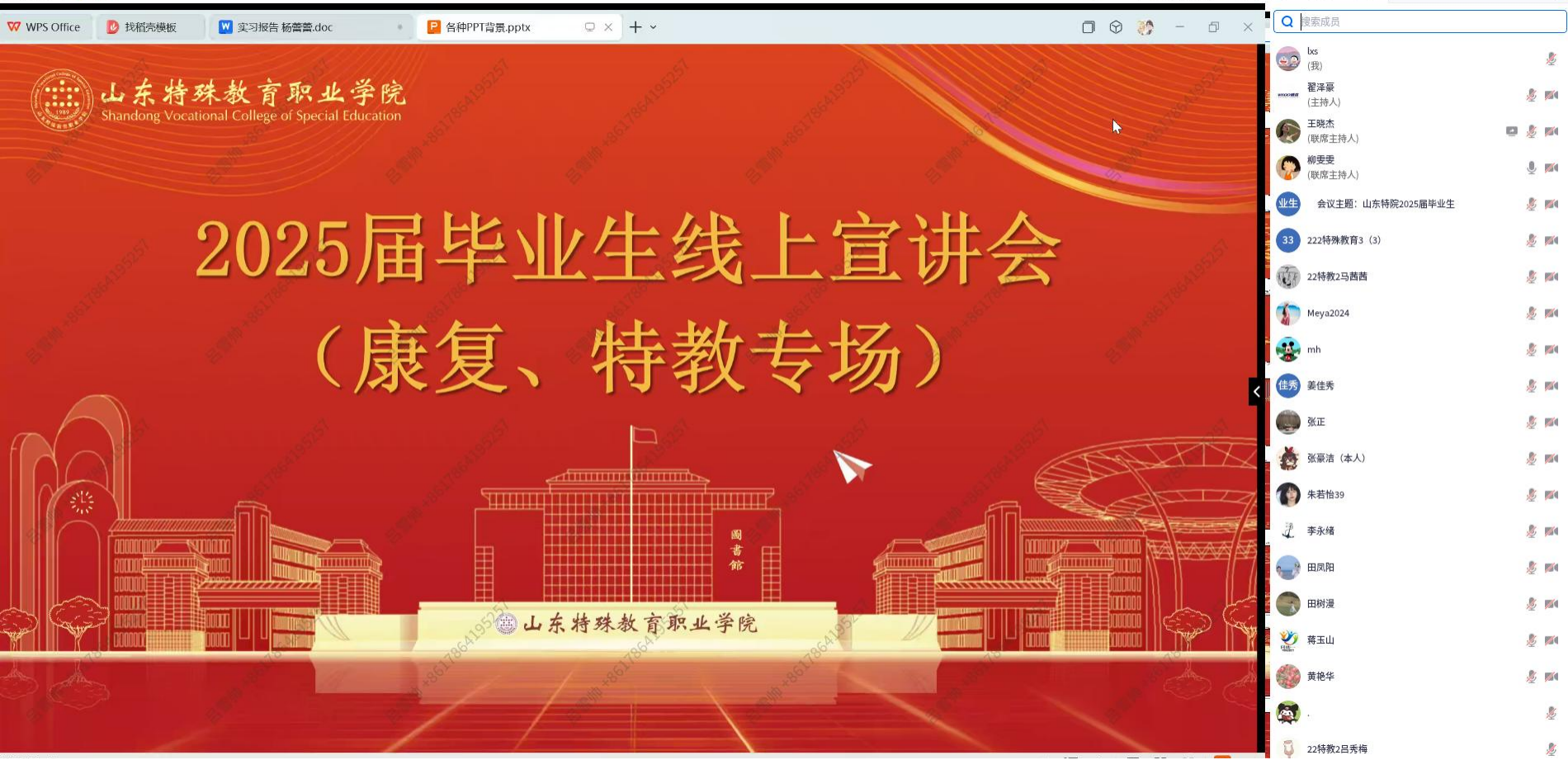 为扎实推进2025届毕业生就业工作,搭建用人单位和毕业生之间的精准对接平台,5月29日晚,招生就业处顺利举办2025届毕业生线上宣讲会-康复、特教专场,医学康复系、特殊教育系共百余名未落实工作单位的毕业生参加此次会议,会议由招生就业处副处长柳雯雯主持。