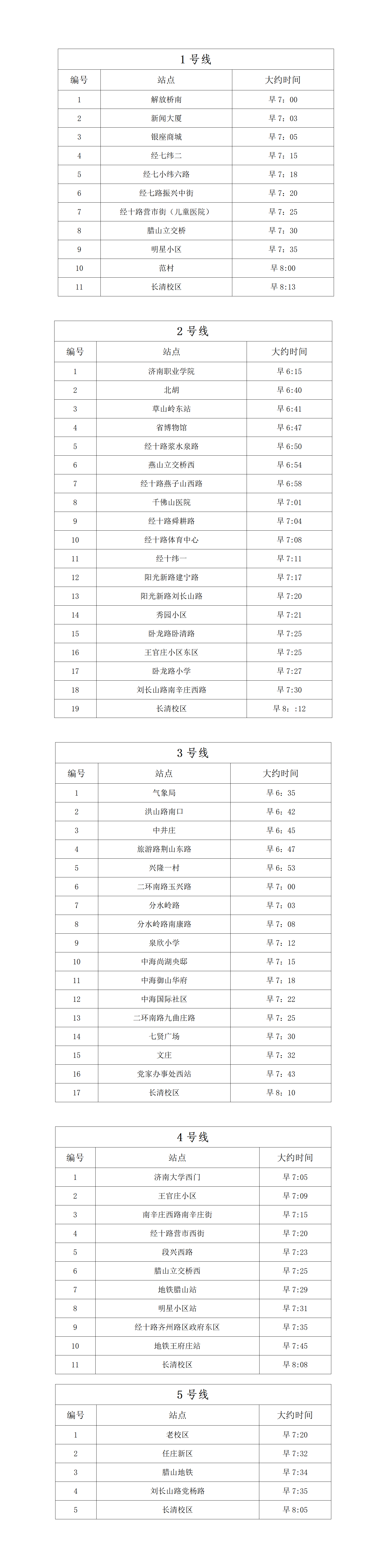 班车运行时刻表